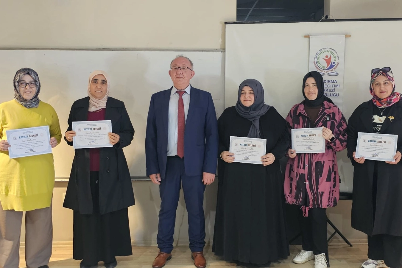 Konuşmaların ardından kursları tamamlayan velilere sertifikaları takdim edildi. Büyük bir ilgi ve gurur atmosferinde gerçekleşen tören, hatıra fotoğraflarının çekilmesiyle sona erdi.