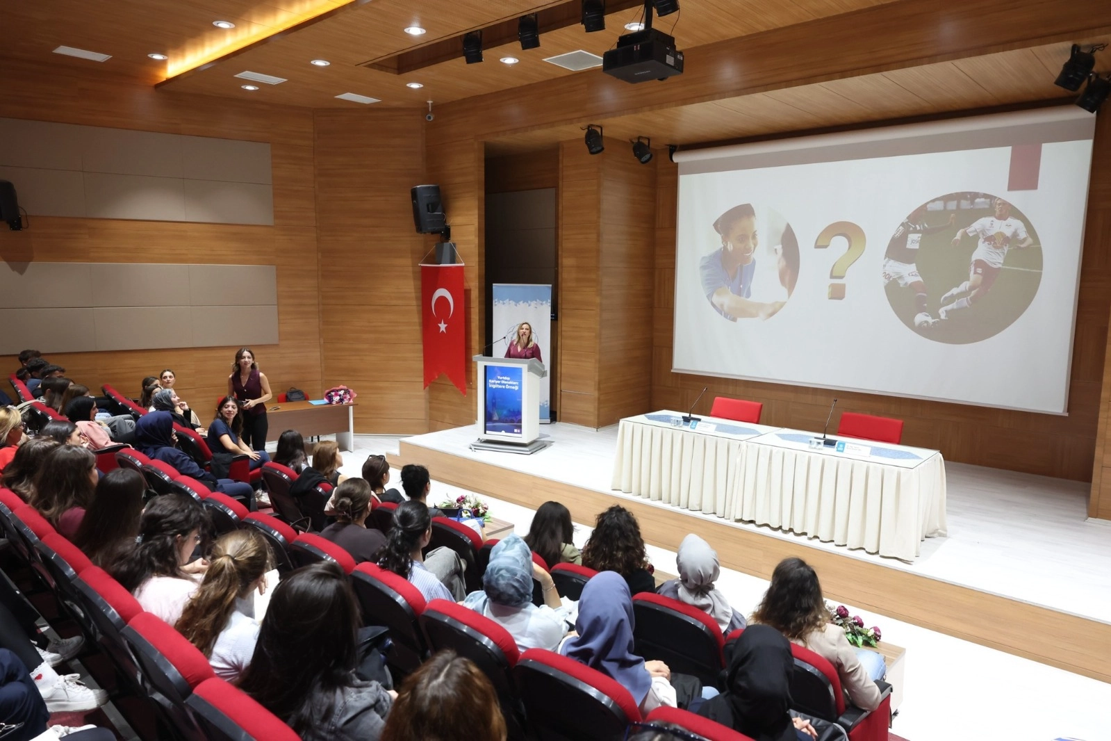 Durmaz, sunumunda İngiltere’de hemşirelik mesleğinin çalışma koşulları, eğitim süreçleri ve uluslararası hemşire alım politikaları hakkında bilgi paylaştı. Türkiye’den İngiltere’ye uzanan mesleki yolculuğunu aktararak öğrencilere ilham verdi.