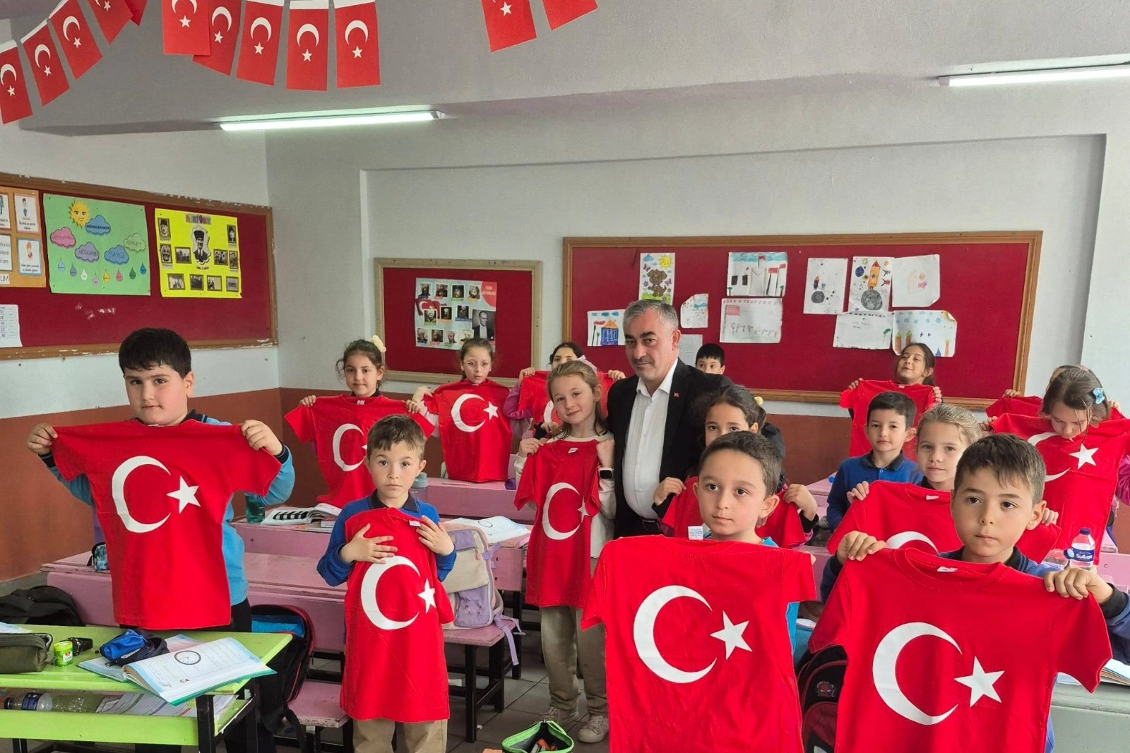 Belediye Başkanı Ahmet Duru tarafından öğrencilere takdim edilen tişörtlerle, çocukların bayram coşkusuna katkı sunulması hedeflendi.
