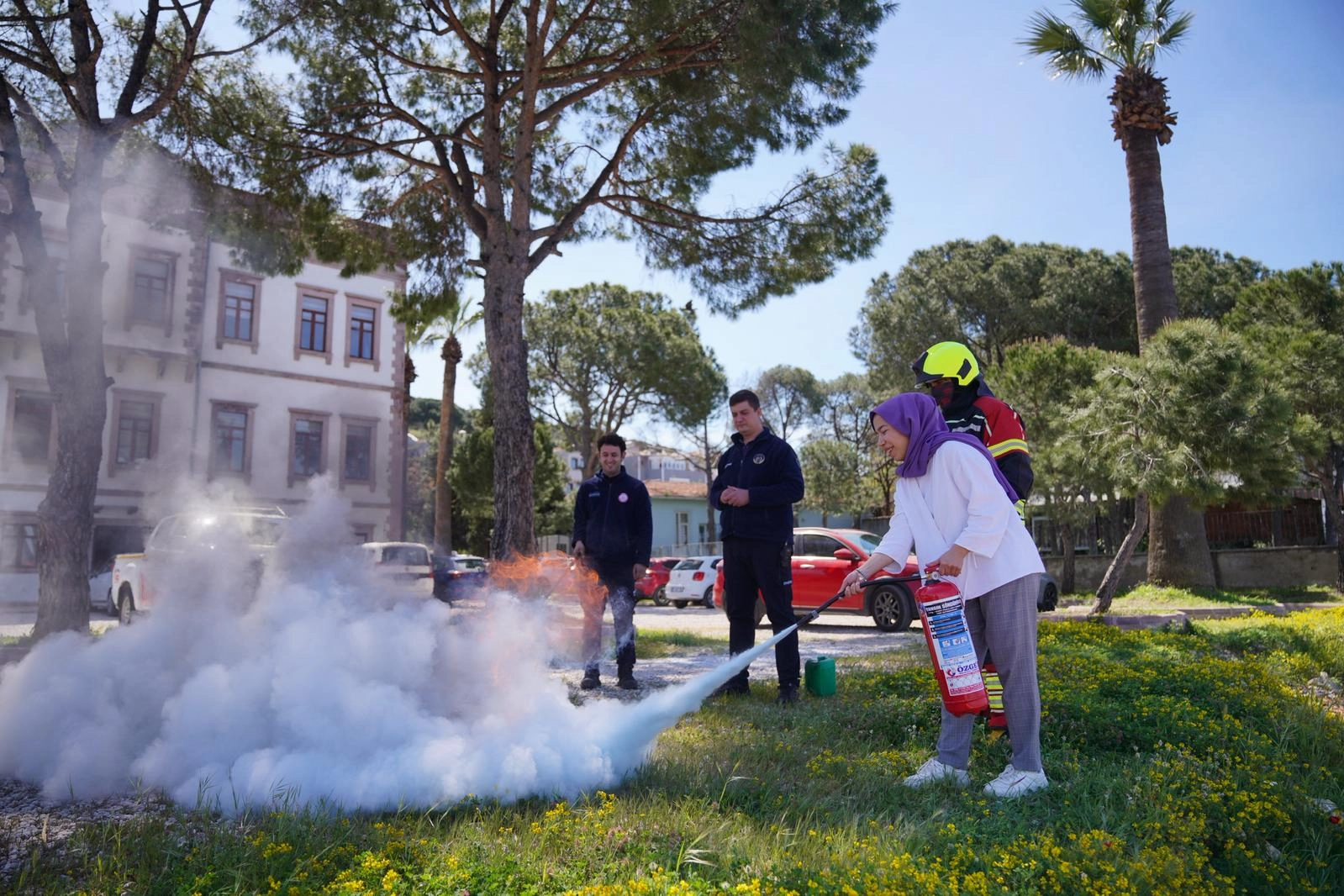 Bu kapsamda Ayvalık Belediyesi çalışanlarına da yangın tatbikatı yaptırıldı. Personelin aktif katılım sağladığı eğitimlerde, yangın anında doğru müdahale yöntemleri birebir uygulanarak olası risklere karşı farkındalık artırıldı.
