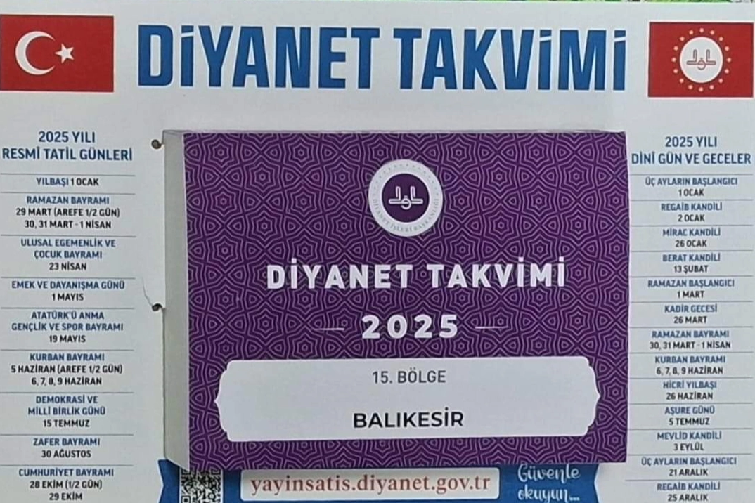 Her yıl olduğu gibi bu yıl da Diyanet İşleri Başkanlığı, ibadet vakitlerini takip etmek ve dini bilgilere kolayca ulaşmak isteyen vatandaşlar için özel bir takvim hazırladı. Takvimde, namaz vakitlerinden dini gün ve gecelere kadar birçok önemli bilgi yer alıyor.