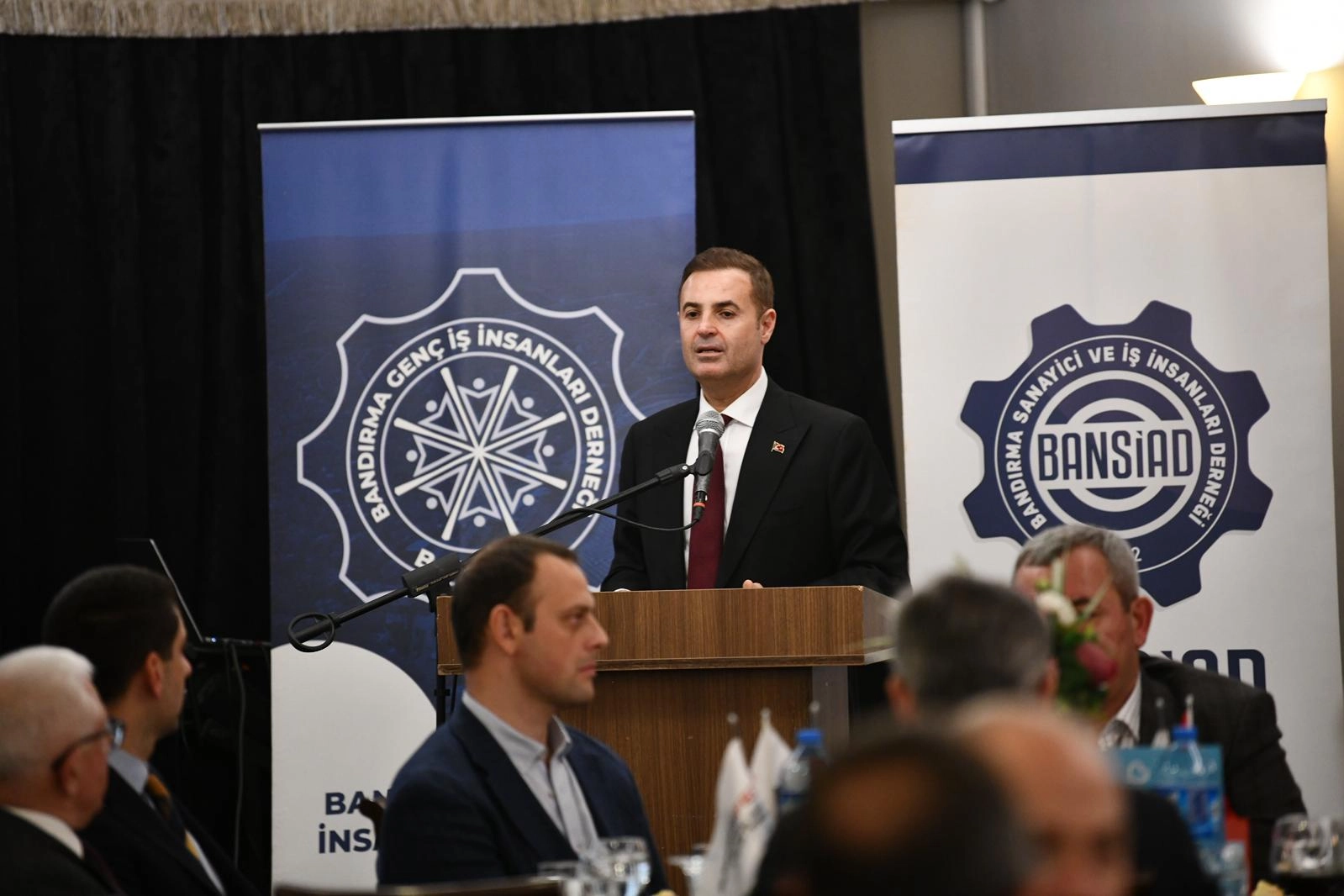 İş dünyasının temsilcileriyle bir araya gelen Akın, Bandırma Entegre Su Projesi Atık Su Arıtma Tesisi yapım çalışmalarının hızla sürdüğünü belirterek, tesisin tamamlanmasıyla birlikte Bandırma’nın altyapı alanında bölgenin en modern kentlerinden biri haline geleceğini söyledi.