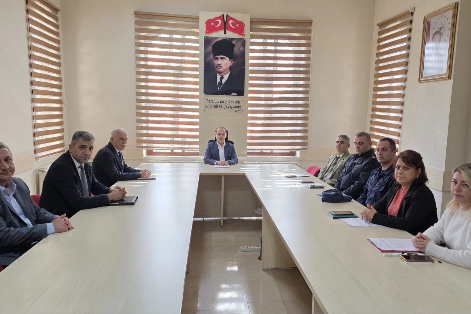 Kaymakamlık makamında düzenlenen toplantıda, vatandaşların bayram tatilini huzur, güven ve esenlik içerisinde geçirmelerini sağlamak amacıyla yürütülecek çalışmalar değerlendirildi. Trafikte kural ihlallerinin en aza indirilmesine yönelik denetimlerin artırılması ve ilgili kurumlar arasındaki koordinasyonun güçlendirilmesi konuları öne çıktı.
