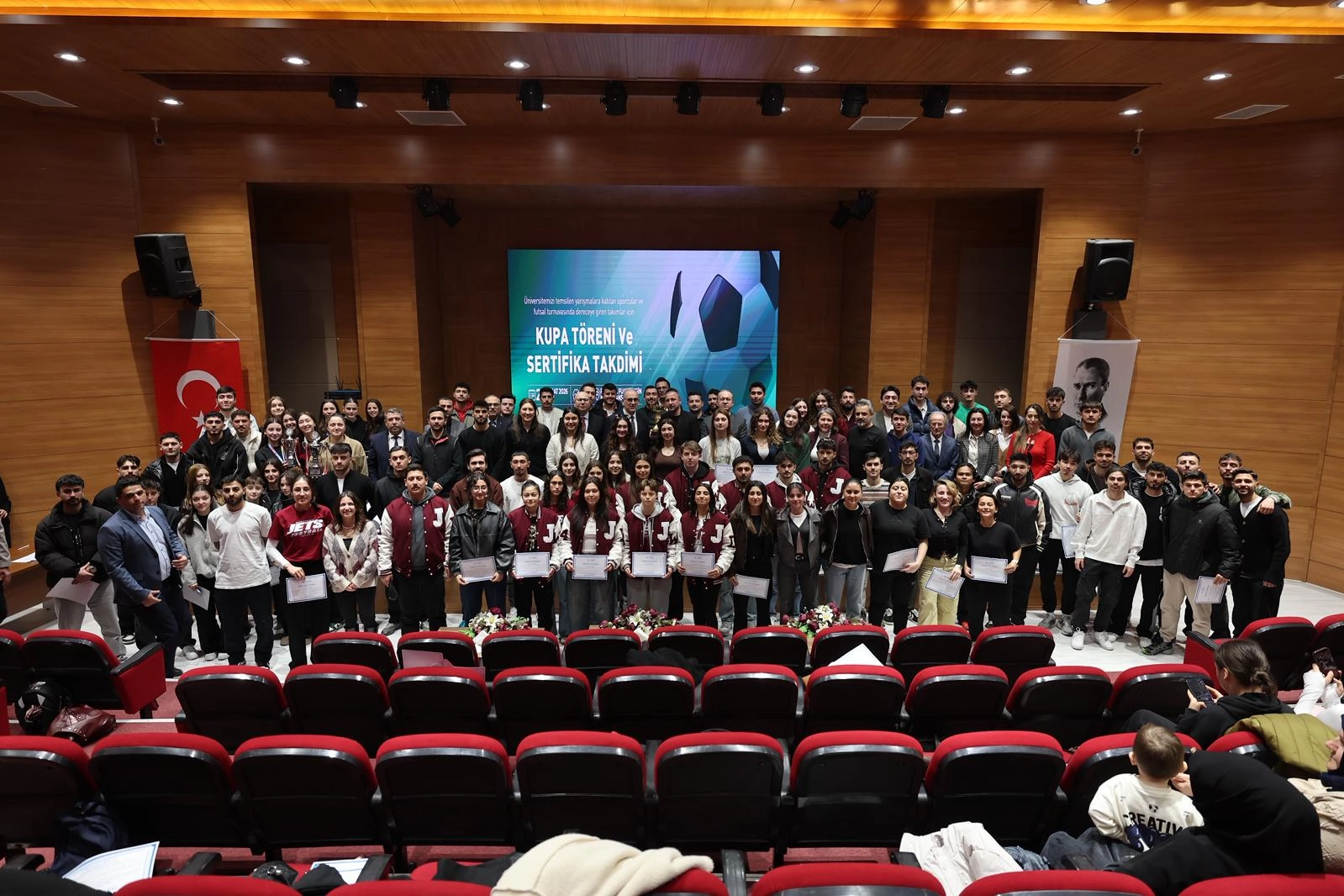 Prof. Dr. Fuat Sezgin Konferans Salonu’nda düzenlenen programa Rektör Prof. Dr. İsmail Boz, Rektör Yardımcıları Prof. Dr. Ebru Kaya Mutlu ve Prof. Dr. Mehmet Emin Erçakar, Spor Bilimleri Fakültesi Dekanı Prof. Dr. Serkan Hacıcaferoğlu, Sanat, Tasarım ve Mimarlık Fakültesi Dekanı Prof. Dr. Eylem Güzel, İnsan ve Toplum Bilimleri Fakültesi Dekanı Prof. Dr. Zekai Mete ile birlikte idari birim yöneticileri, akademik ve idari personel ile öğrenciler katıldı. Program kapsamında üniversiteyi başarıyla temsil eden sporcular ve futsal turnuvasında dereceye giren takımlar sahneye davet edilerek tebrik edildi.