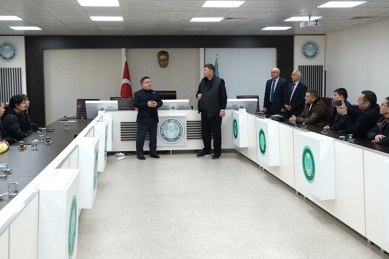 Balıkesir Üniversitesi (BAÜN), uluslararası akademik iş birliklerini güçlendirmeye devam ediyor. 1 haftalık akademik program için Özbekistan’ın Gülistan Devlet Üniversitesi’nden gelen 15 kişilik akademik heyet, Rektör Prof. Dr. Yücel Oğurlu tarafından Senato Salonunda kabul edildi.