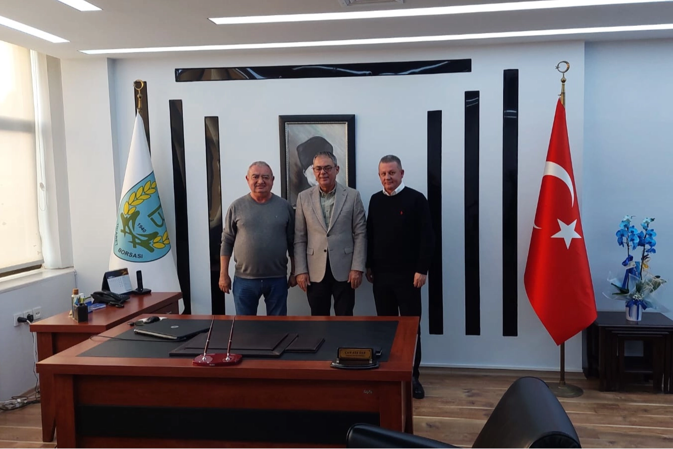 Ziyaret kapsamında Bandırma Ticaret Borsası Yönetim Kurulu Başkanı Can Ata Tan ile bir araya gelen Ahmet Edin ve Osman Lafçı, süt ve peynir sektörüne ilişkin değerlendirmelerde bulundu.