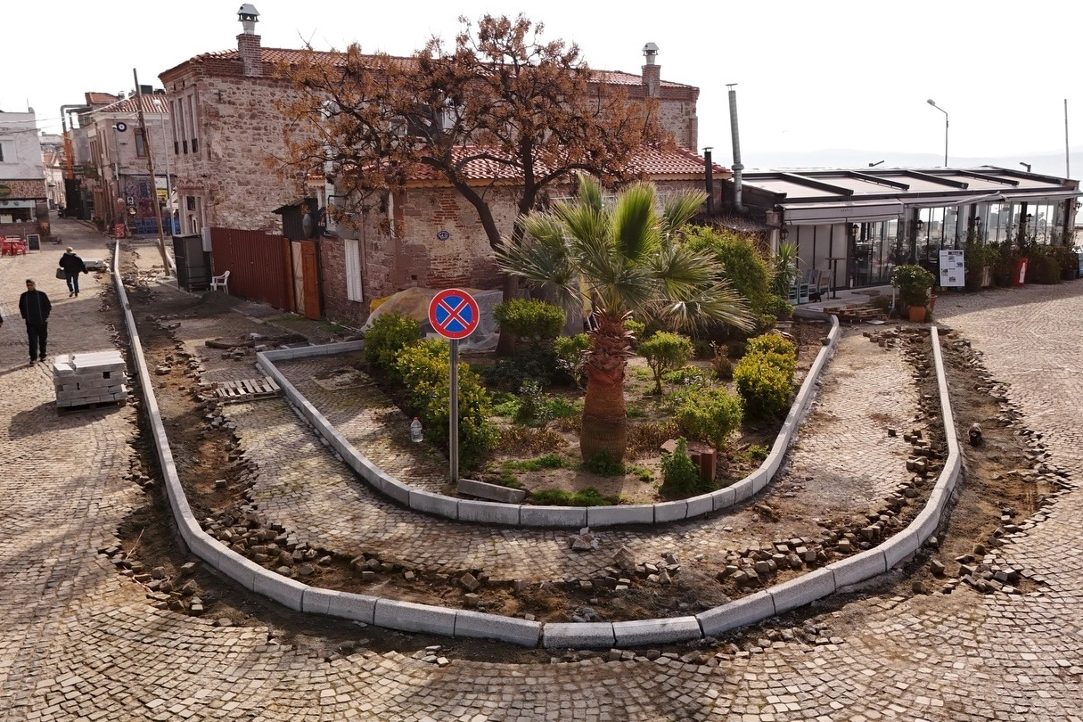 Alibey (Cunda) Adası’nda Eski Yol Giriş Meydanı ile Ali Çetinkaya Meydanı arasındaki güzergâhta çevre düzenleme çalışmaları devam ediyor.