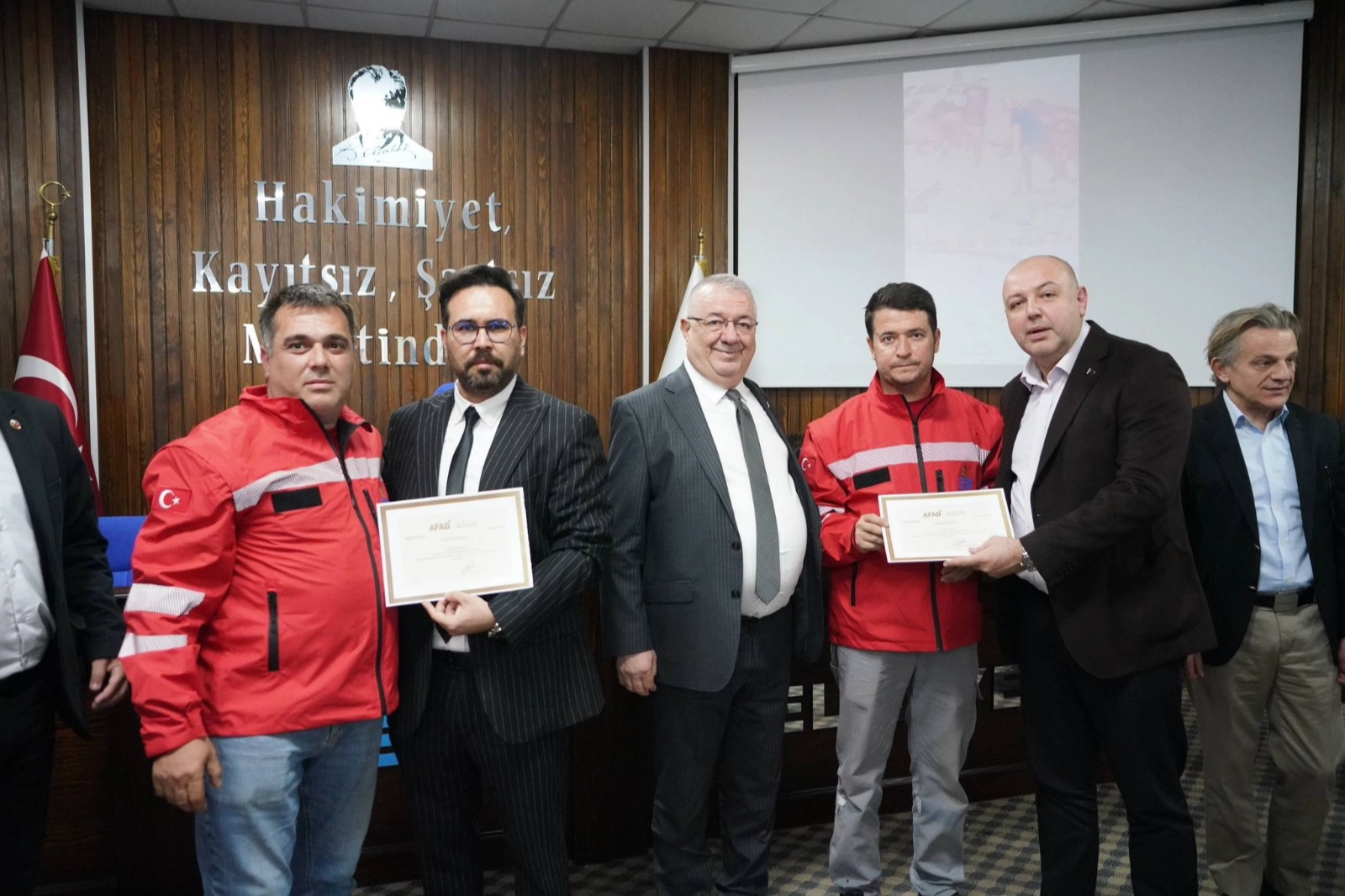 Edremit Belediye Başkanı Mehmet Ertaş, Balıkesir Valiliği İl Afet ve Acil Durum Müdürlüğü (AFAD) tarafından verilen beş günlük teorik ve pratik eğitimi başarıyla tamamlayan Edremit Belediyesi Arama Kurtarma Ekibi’ne sertifikalarını teslim etti.