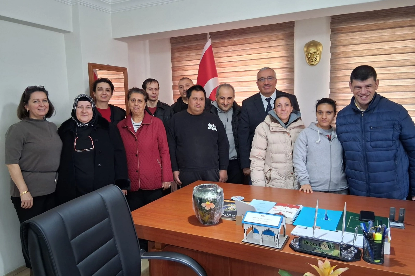 Erdek ENGEL-DER Engelli Derneği Başkanı Meliha Söğüt ile dernek bünyesindeki öğrenciler, Erdek İlçe Müftülüğü’nü ziyaret etti. Ziyaret kapsamında müftülüğün işleyişi ve görev alanları hakkında öğrencilere İlçe Müftüsü Doğan Eygün tarafından bilgilendirme yapıldı.