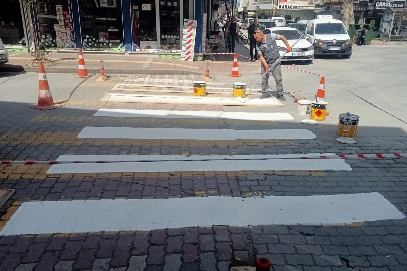 Belediye zabıta ekipleri tarafından yaya geçitlerinde çizgi yenileme çalışmaları gerçekleştirildi.