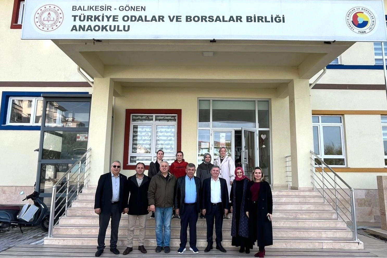 Gönen Ticaret Odası Yönetim Kurulu Başkanı İsmail Mutlu, Meclis Başkanı Yusuf Çetinkaya ve Oda Meslek Komitesi Üyesi Süleyman Zengin, Türkiye Odalar ve Borsalar Birliği’nin katkılarıyla ilçeye kazandırılan Balıkesir–Gönen TOBB Anaokulunu ziyaret etti.