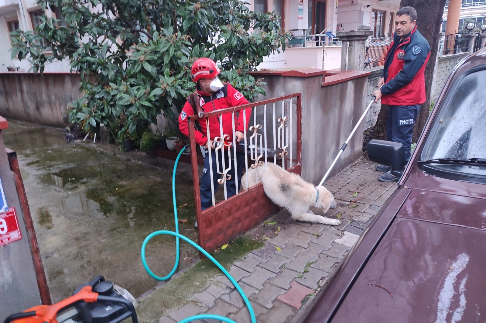 Olay, Cami Kebir Mahallesi 100. Sokak No:9 adresinde bulunan bir avlu kapısında meydana geldi. Demir kapıya sıkışan köpeği fark eden vatandaşlar durumu yetkililere bildirdi.