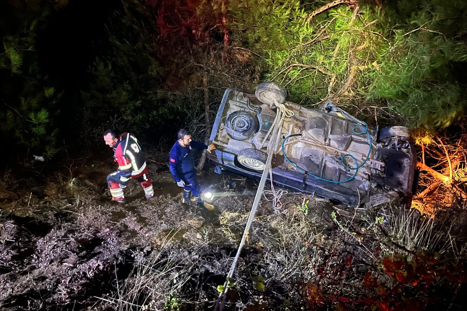 İhbar üzerine olay yerine AFAD, itfaiye, jandarma ve sağlık ekipleri sevk edildi. Ekiplerin yoğun ve titiz çalışması sonucu araçta sıkışan vatandaş kurtarılarak sağlık ekiplerine teslim edildi.