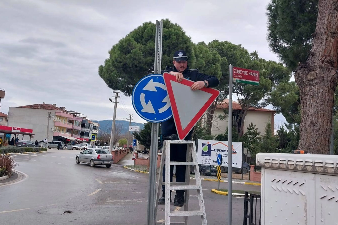 Kepsut Belediyesi Zabıta Müdürlüğü ekipleri tarafından ilçe merkezinde trafik uyarı levhalarına yönelik çalışma gerçekleştirildi. Çalışma kapsamında kullanım ömrünü tamamlayan ve eskiyen tabelalar sökülerek yenileriyle değiştirildi.