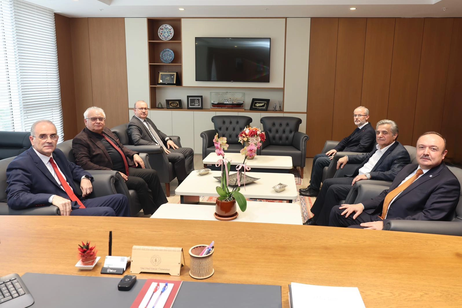 Rektörlük makamında gerçekleşen ziyarette, Rektör Yardımcıları Prof. Dr. Alpaslan Serel ve Prof. Dr. Mehmet Emin Erçakar ile Genel Sekreter Faruk Küçük hazır bulundu. Emekli olan eski Genel Sekreter Cihangir Boz da ziyarete katıldı.