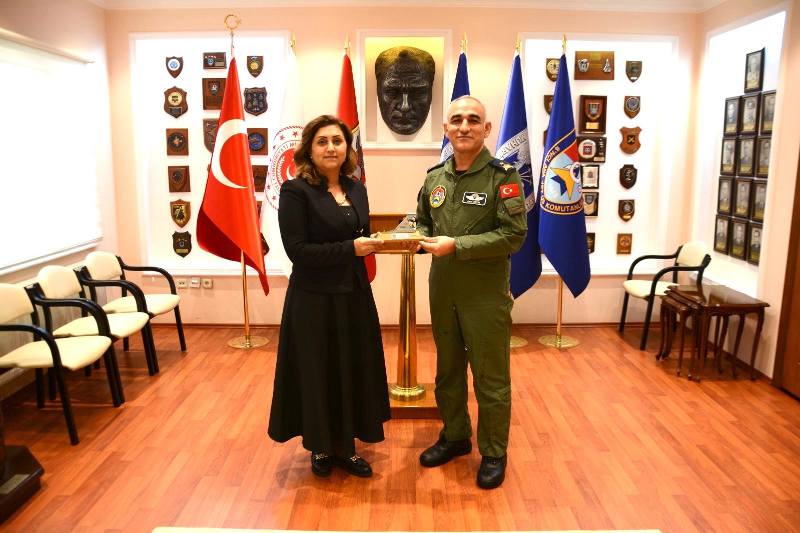 Balıkesir Aile ve Sosyal Hizmetler İl Müdürü Emine Böçkün, 6. Ana Jet Üssü Bandırma Garnizon Komutanı Hava Pilot Tuğgeneral Esat Çetin’e nezaket ziyaretinde bulundu.