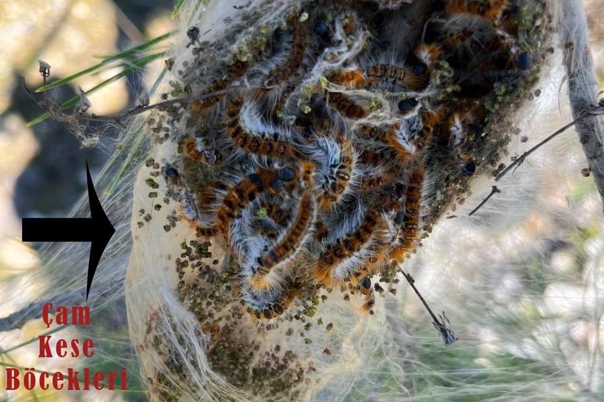 Halk arasında tırtıl olarak bilinen çam kese böcekleri, ağaçların ibrelerini yiyerek gelişimin zayıflamasına ve ağaçlarda yanık görüntüsü oluşmasına neden oldu.