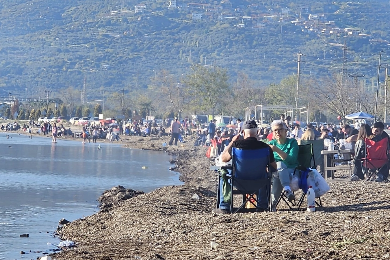 Bandırma ile Erdek arasında yer alan ve halk arasında “Edincik Altı” olarak bilinen sahil bölgesi, adeta dolup taştı. Güzel havayı değerlendirmek isteyen vatandaşlar kamp sandalyelerini alarak sahil kenarında vakit geçirirken, bazıları ise yanlarında getirdikleri mangallarla keyifli anlar yaşadı.