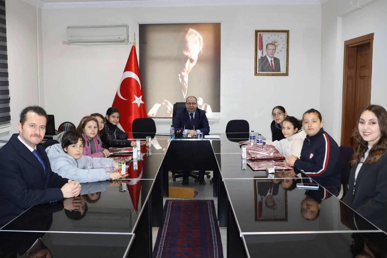 Susurluk Düşünür Koleji 5. ve 6. sınıf öğrencileri ile öğretmenleri, Susurluk Kaymakamı Sayın Turgut Gülen’i makamında ziyaret etti.