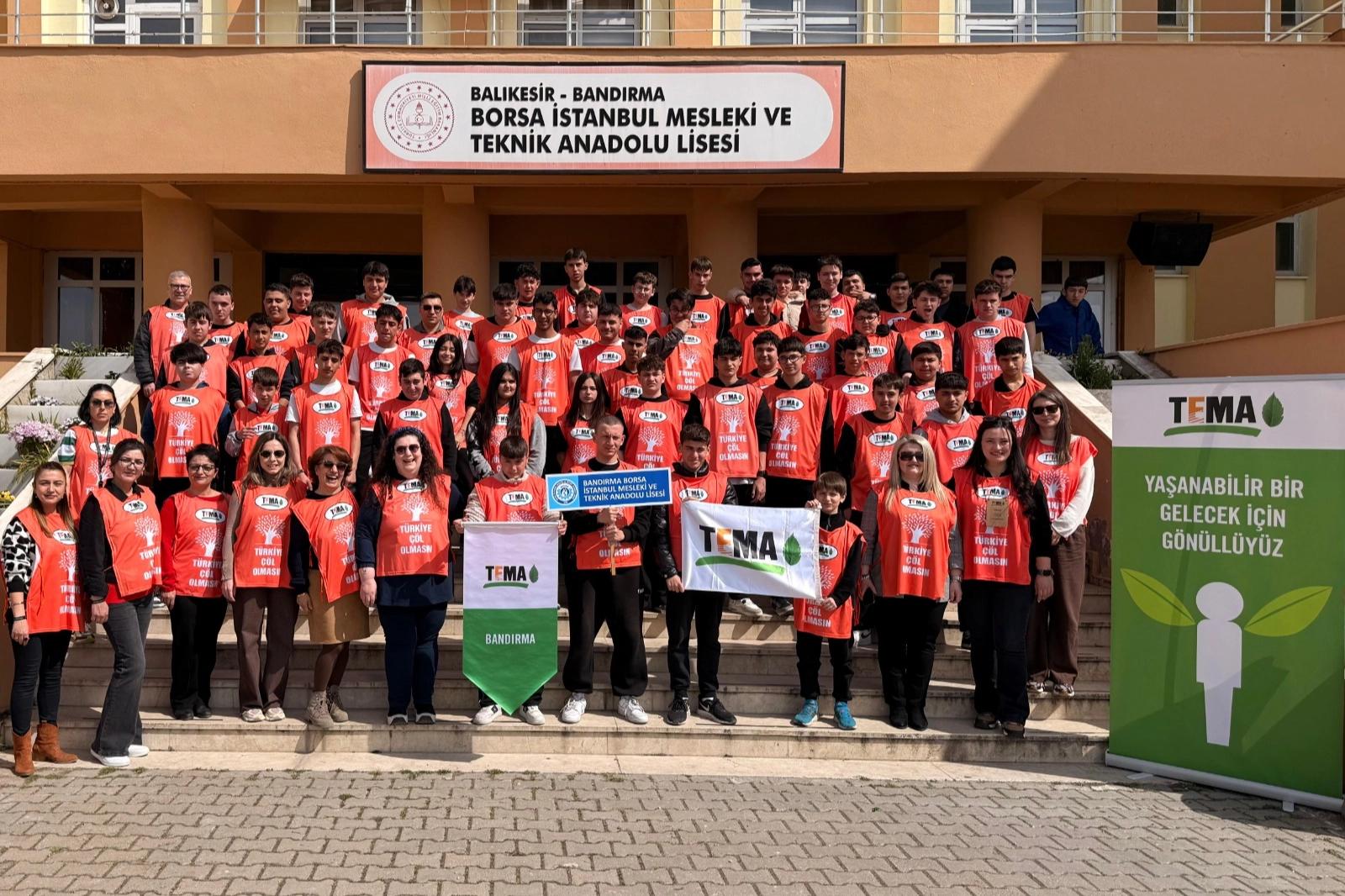 TEMA Vakfı Bandırma İlçe Sorumluluğu tarafından, Bandırma Borsa İstanbul Mesleki ve Teknik Anadolu Lisesi’nde fidan dikim etkinliği gerçekleştirildi. Okul Müdürü Gülsevim Kaçar’ın ev sahipliğinde düzenlenen programda, çok sayıda meyve fidanı okul bahçesine dikildi.