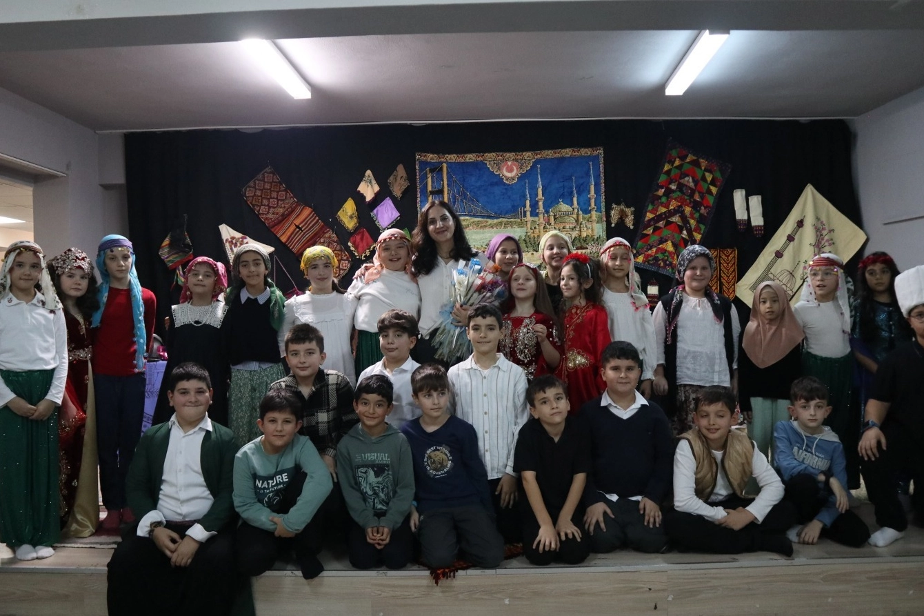 Sergi ve programda emeği geçen öğretmenlere, velilere ve öğrencilere teşekkür eden Okul Müdürü Selim Akbaş, milli kültürün yaşatılmasının önemine dikkat çekti.