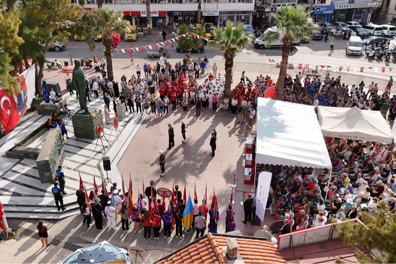 Cumhuriyet Meydanı’nda ellerinde Türk bayraklarıyla yerlerini alan Ayvaklılar, milli birlik ve beraberlik ruhunu bir kez daha en güçlü şekilde hissetti. Saygı duruşu ve İstiklal Marşı ile başlayan programda konuşmaların ardından öğrencilerin okuduğu şiirler, halk oyunları gösterileri ve çeşitli etkinlikler yer aldı. Katılımcılar, hem coşkulu hem de duygu dolu anlar yaşadı. Etkinlikler, selamlama ve bando’nun çaldığı marşlar eşliğinde kortej yürüyüşüyle tamamlandı. Törende konuşan Ayvalık Belediye Başkanı Mesut Ergin, tarihin en gururlu günlerinden birini kutlamak üzere bir araya geldiklerinin altını çizdi.