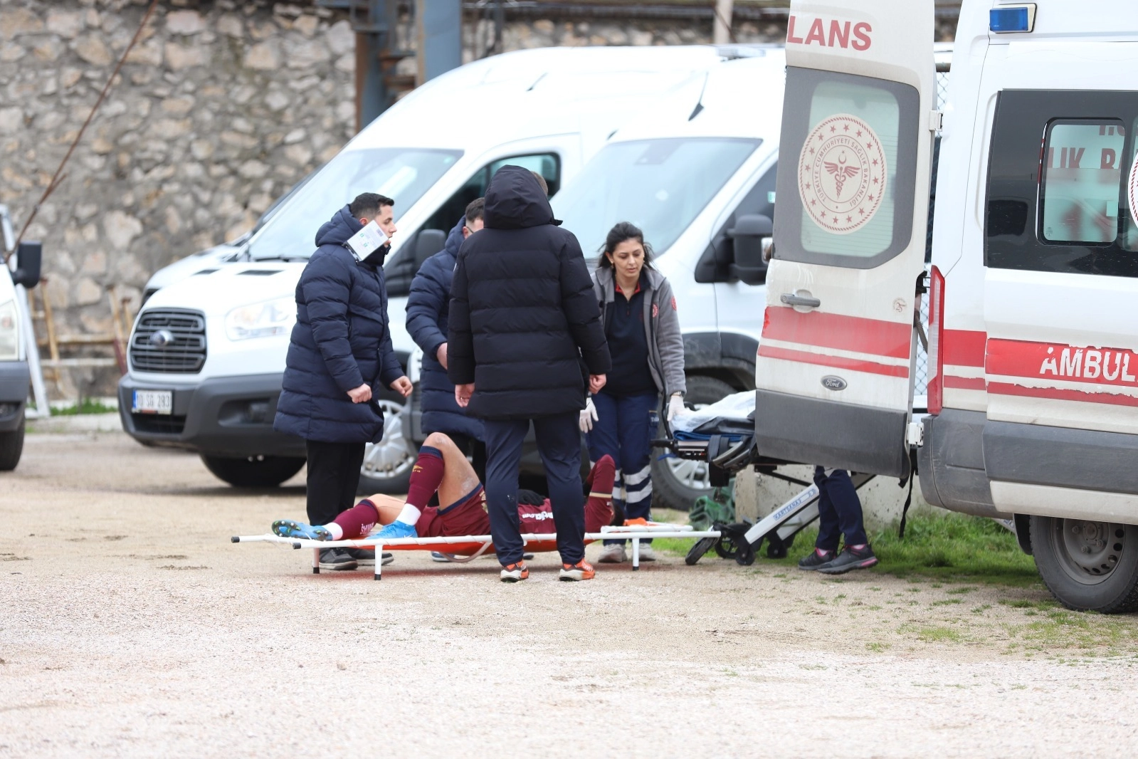 Bandırmaspor’un Portekizli futbolcusu João Amaral, mücadelenin 30. dakikasında ceza sahası içinde girdiği ikili mücadelede yere düşerek sakatlandı. Oyuncu, yaşadığı sakatlık sonrası oyuna devam edemedi.
