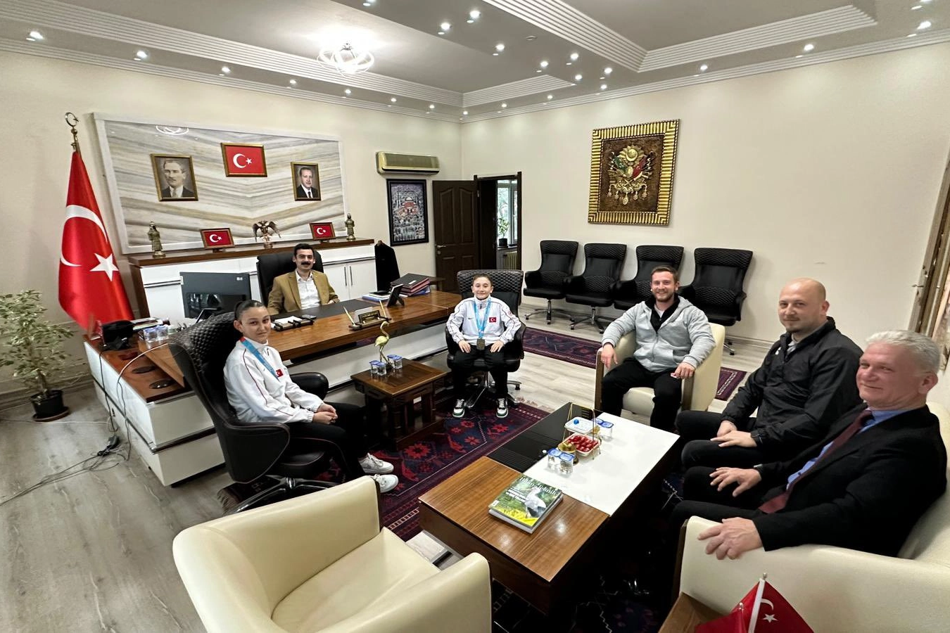 Kaymakam Bayram, sporcuları elde ettikleri dereceler dolayısıyla tebrik ederek başarılarının devamını diledi. Ziyaret, hatıra fotoğrafı çekimiyle sona erdi.