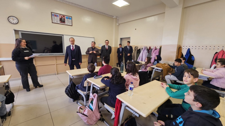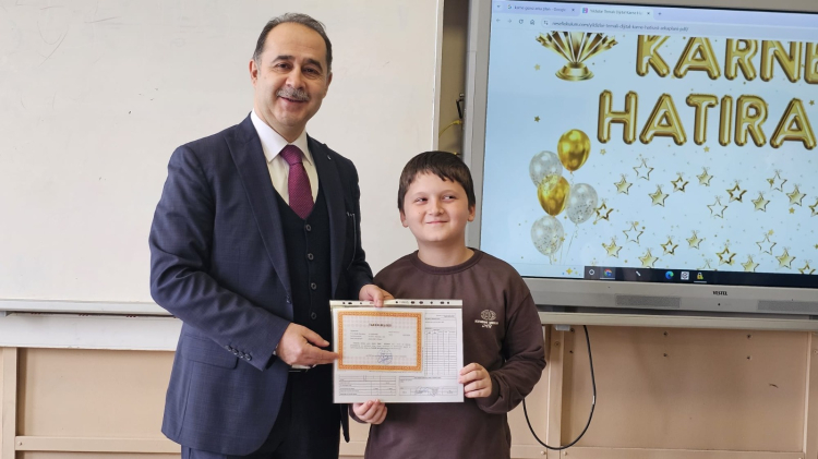 Protokol üyeleri, sınıfları gezerek öğrencilere karnelerini dağıttı, başarılarından dolayı tebrik ederek tatil dönemine ilişkin tavsiyelerde bulundu.