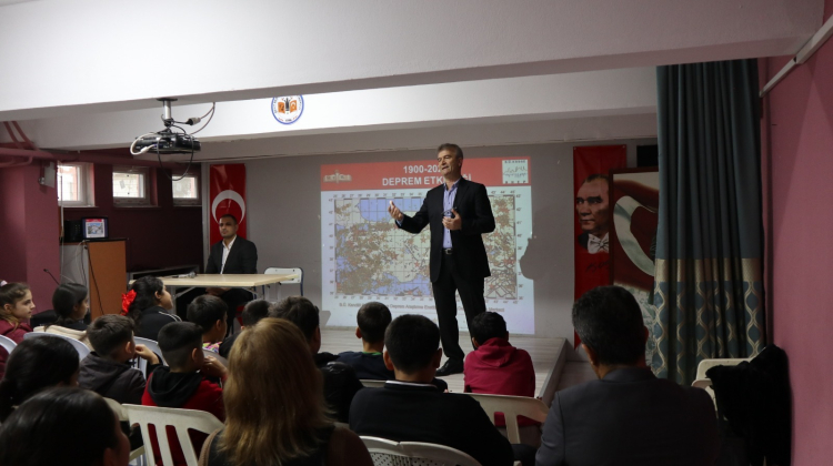 Etkinlikte Emrah Örs, Celil Akyol ve Zafer Ergün öğrencilere depremle ilgili temel bilgileri aktardı. Sunumda depremin oluşumu, hazırlık süreçleri, acil durum çantasında bulunması gereken malzemeler ve afet anında yapılması gerekenler başlıkları işlendi. Öğrenciler, etkileşimli anlatımlar sayesinde deprem konusunda önemli bilgiler edindi.