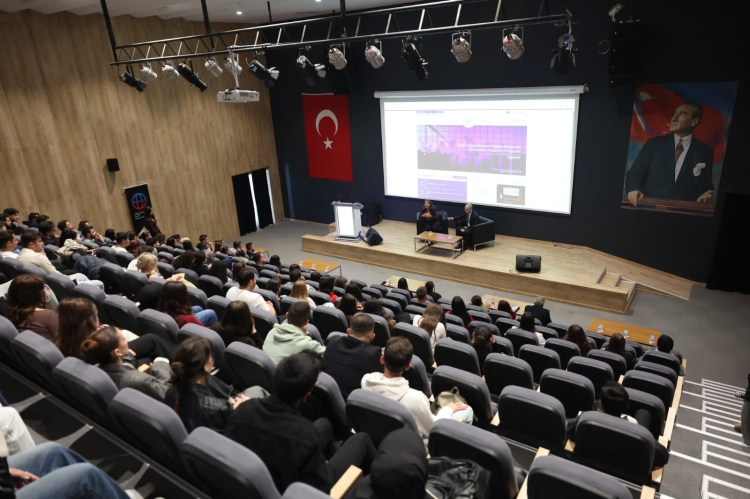 Programın devamında, Kalite Koordinatör Yardımcısı Öğr. Gör. Dr. İsmail Arı tarafından “Kalite Süreçlerinde Öğrencilerin Rolü” başlıklı bir sunum gerçekleştirildi. Sunumda, öğrencilerin kalite süreçlerine katkısının önemi anlatılarak, üniversitenin yürütmekte olduğu kurumsal akreditasyon süreci hakkında bilgi paylaşıldı.