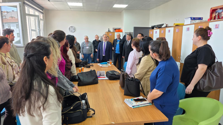 Ziyarette İlçe Milli Eğitim Müdürü Mutlu Aslan da yer aldı. Öğretmenlerle bir araya gelen Aksakal, eğitim ve öğretimin önemine dikkat çekerek yürütülen çalışmalar hakkında değerlendirmelerde bulundu.