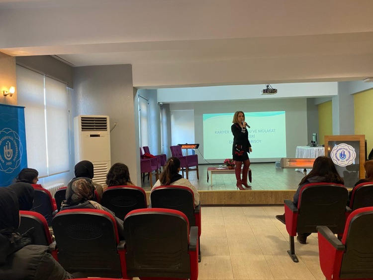 Etkinlikte kariyer planlama süreçleri, iş hayatına geçiş aşamasında karşılaşılan zorluklar ve etkili mülakat teknikleri ele alındı. Dr. Arısoy, mülakat süreçlerinde adayların kendilerini doğru ve etkili ifade etmelerinin önemine dikkat çekerek beden dili, iletişim becerileri ve stres yönetimi konularında uygulamaya yönelik bilgiler aktardı.