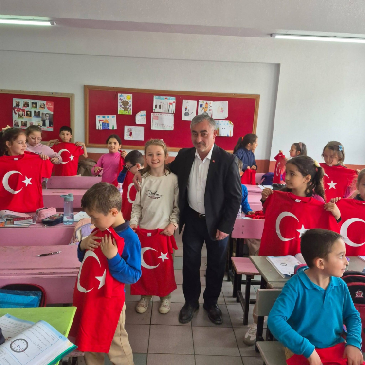 Belediye Başkanı Ahmet Duru tarafından öğrencilere takdim edilen tişörtlerle, çocukların bayram coşkusuna katkı sunulması hedeflendi.