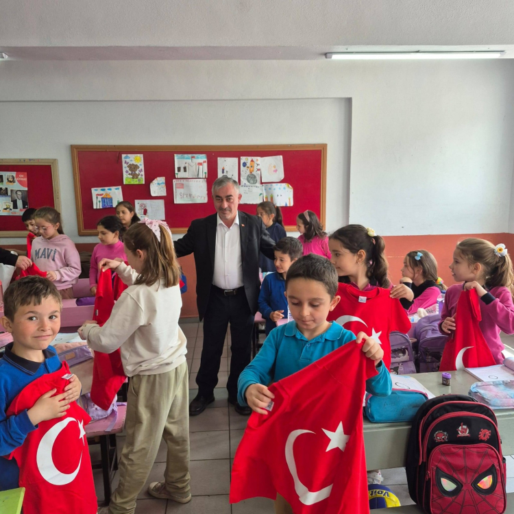 Manyas Belediyesi, yaklaşan 23 Nisan Ulusal Egemenlik ve Çocuk Bayramı öncesinde ilçedeki öğrencilere Türk bayraklı tişörtler hediye etti.