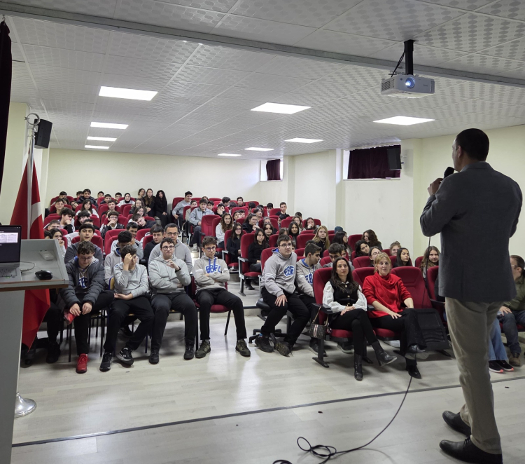İnşaat Mühendisleri Odası Bandırma Temsilciliği tarafından verilen seminerde, İnşaat Mühendisi Celil Akyol, İnşaat Mühendisi Emrah Örs öğrencilere deprem gerçeği ve alınması gereken önlemler hakkında kapsamlı bilgiler aktardı.