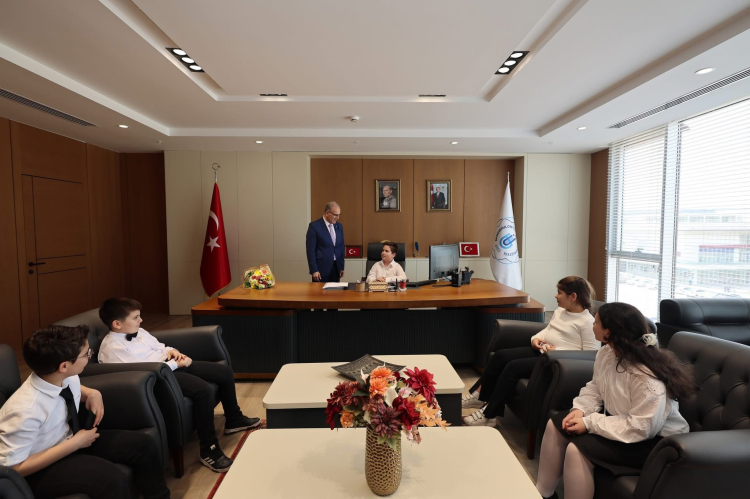 Bandırma Doğa Koleji öğrencileri, 23 Nisan Ulusal Egemenlik ve Çocuk Bayramı dolayısıyla Bandırma Onyedi Eylül Üniversitesi Rektörü Prof. Dr. İsmail Boz’u makamında ziyaret etti. Ziyarete Doğa Koleji Müdürü Merve Yaman ile İlkokul Müdürü Yavuz Yuvalı da eşlik etti.