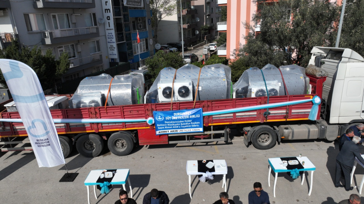 “Tarımda Balıkesir Modeli" ile üretimin ve üreticinin yanında olan çiftçi dostu Balıkesir Büyükşehir Belediye Başkanı Ahmet Akın, süt üreticilerinin yüzünü güldüren önemli bir desteği hayata geçirdi. Balıkesir Büyükşehir Belediyesi tarafından 25 mahalleye süt soğutma tankı desteği verildi. Kuvayı Milliye Meydanı’nda düzenlenen “Süt Soğutma Tankı Dağıtım Töreni”ne Balıkesir Büyükşehir Belediye Başkanı Ahmet Akın'ın yanı sıra CHP Balıkesir Milletvekili Serkan Sarı, Demokrat Parti İzmir Milletvekili Haydar Altıntaş, CHP Balıkesir İl Başkanı Erden Köybaşı, Demokrat Parti Balıkesir İl Başkanı Işın Gümüşyay, Balıkesir İli Damızlık Sığır Yetiştiricileri Birliği Başkanı Hasan Çetin, HAYKOOP Başkanı Faruk Özen, muhtarlar, kooperatif temsilcileri, üreticiler ve basın mensupları katıldı. Sebzeden meyveye, arpadan buğdaya kadar pek çok ürünün yetiştirildiği Balıkesir’in verimli arazilerinin sahipsiz kalmaması için projeler hayata geçirdiklerini söyleyen Balıkesir Büyükşehir Belediye Başkanı Ahmet Akın, süt üreticilerini de yalnız bırakmadıklarını ifade etti.