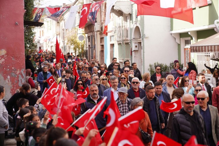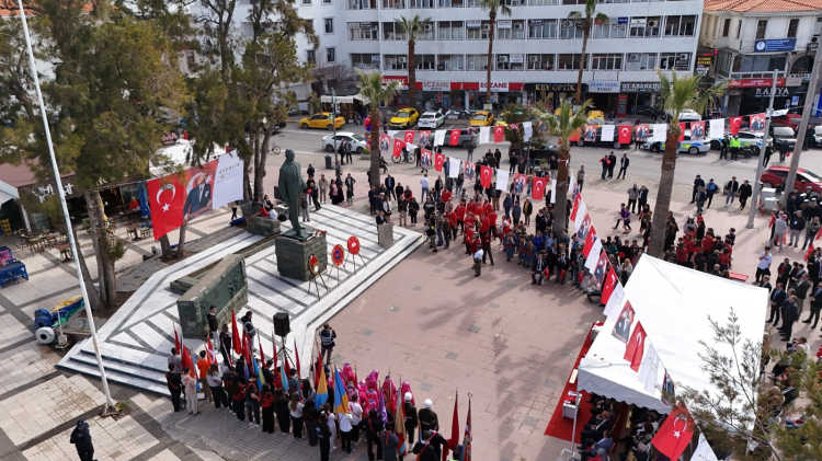 Atatürk'ün ilçeye giriş yaptığı güzergâh üzerinden gerçekleştirilen yürüyüşe; Ayvalık Kaymakamı Hasan Yaman, Ayvalık Belediye Başkanı Mesut Ergin, eşi Canan Ergin, gaziler ve şehit aileleri, siyasi parti ve sivil toplum örgütlerinin temsilcileriyle öğrenciler katıldı.