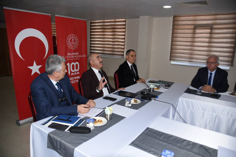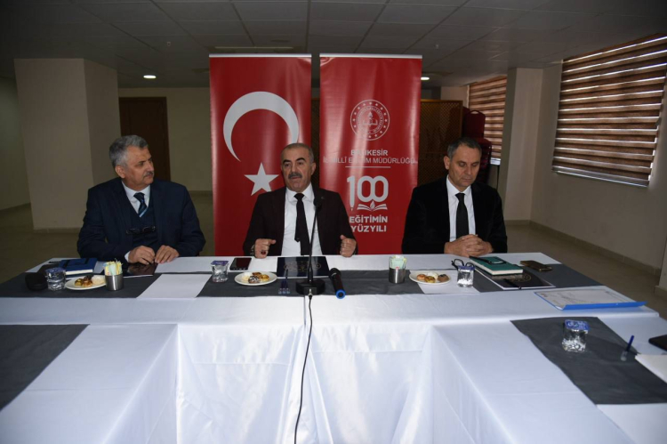 Balıkesir’de 2025–2026 eğitim öğretim yılı hazırlıkları kapsamlı bir toplantıyla ele alındı. İl Millî Eğitim Müdürü Murat Demir’in başkanlık ettiği toplantıya, Eğitim Müfettişleri Başkanı Ahmet Kahvecioğlu, İl Millî Eğitim Müdür Yardımcısı Özcan Özen ve ilçe millî eğitim müdürleri katıldı. Program, Karesi Gazi Mustafa Kemal Turizm Mesleki ve Teknik Anadolu Lisesi Uygulama Oteli’nde yapıldı.