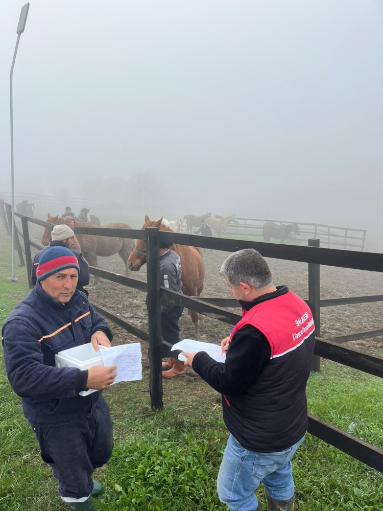 Balıkesir İl Tarım ve Orman Müdürlüğü, kent genelinde hayvan sağlığını korumaya yönelik çalışmalarını sürdürüyor. Müdürlük bünyesinde görev yapan teknik personeller, saha çalışmalarının bir parçası olarak safkan Arap ve İngiliz atlarda detaylı sağlık kontrolleri yaptı.