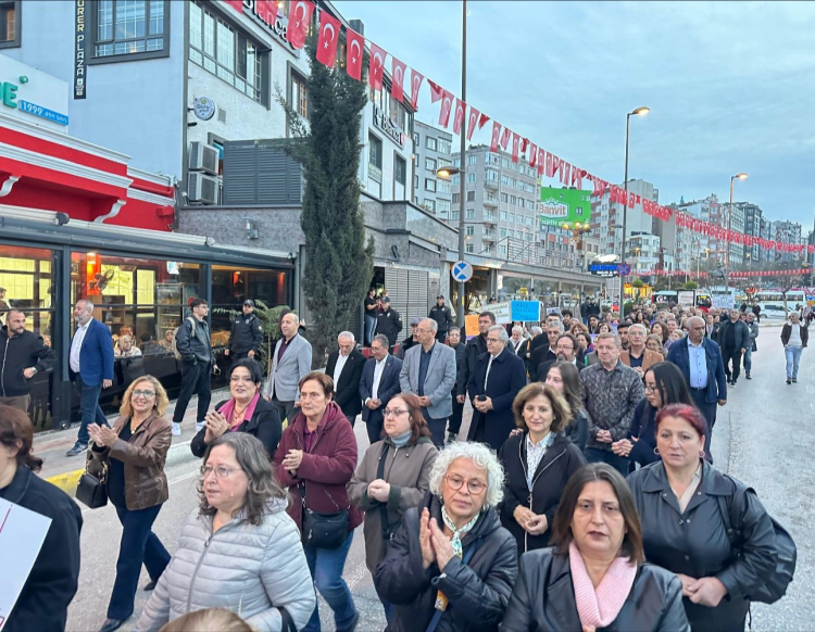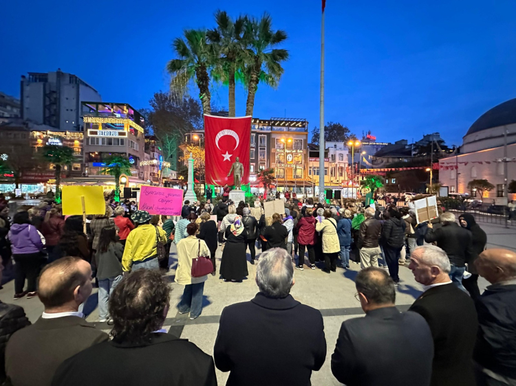 İDO İskelesi önünde toplanan kadınlar, pankartlar ve sloganlarla Cumhuriyet Meydanı’na yürüdü. Meydanda yapılan açıklamalarla kadın cinayetlerine ve toplumsal cinsiyet eşitsizliğine dikkat çekildi.