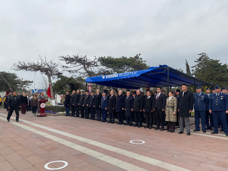 Bandırma Şehitliği’nde düzenlenen törene Kaymakam Engin Aksakal, Garnizon Komutanı Hava Pilot Tuğgeneral Esat Çetin, Belediye Başkanı Dursun Mirza, İlçe Jandarma Komutanı Binbaşı Onur Durna, İlçe Emniyet Müdürü Mesut Demirdaş, Bandırma Onyedi Eylül Üniversitesi (BANÜ) Rektörü Prof. Dr. İsmail Boz, İlçe Milli Eğitim Müdürü Mutlu Aslan, siyasi parti temsilcileri, gaziler, emekliler ve şehit yakınları katıldı.