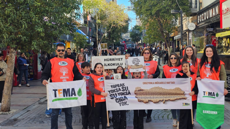 Bu bağlamda Türkiye Erozyonla Mücadele, Ağaçlandırma ve Doğal Varlıkları Koruma Vakfı (TEMA) Bandırma İlçe Sorumluluğu, Erozyonla Mücadele Haftası kapsamında dikkat çeken bir farkındalık etkinliği düzenledi. TEMA Bandırma İlçe Sorumlusu Esin Ekşi, yönetim ekibi, gönüllüler ve Bandırma Hürriyet İlkokulu 4. sınıf öğrencileriyle birlikte kent merkezinde yürüyüş gerçekleştirdi.