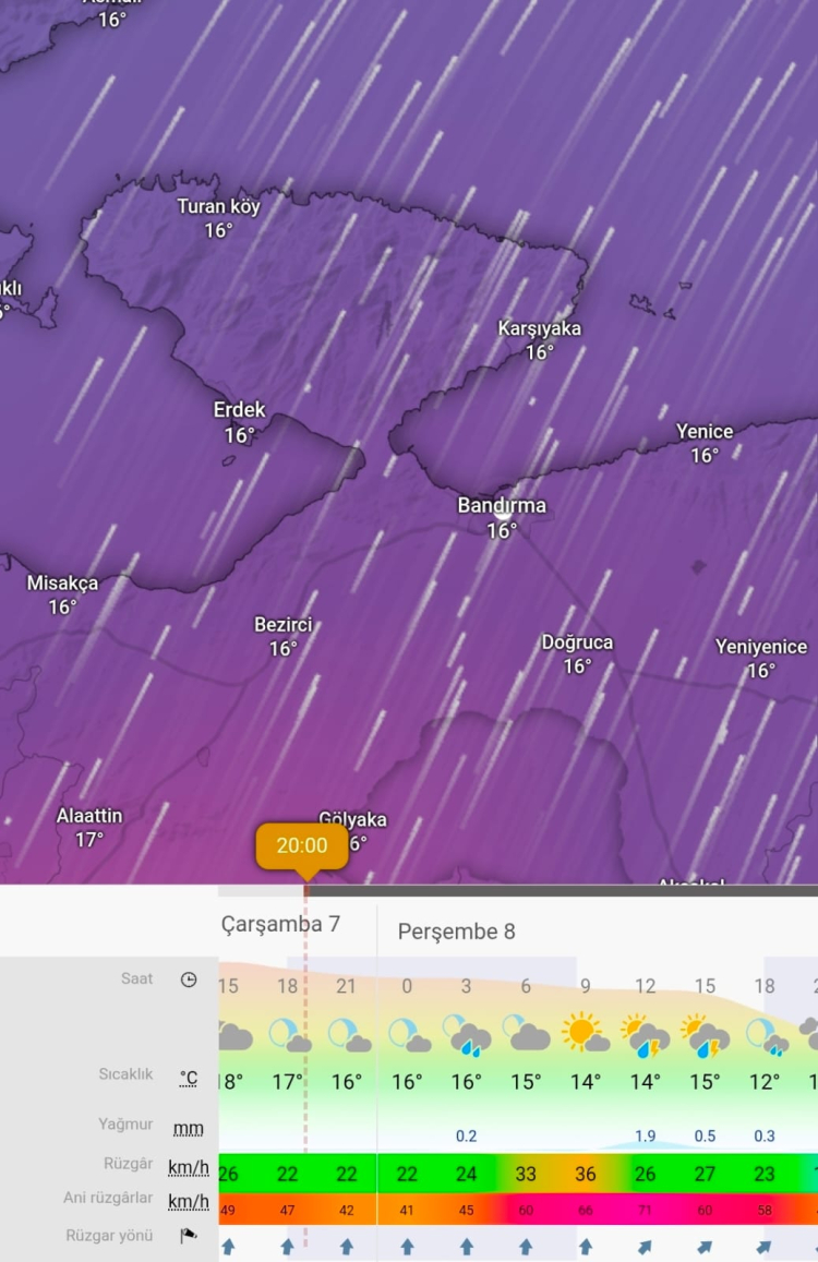 Hava sıcaklıklarının gün boyunca 14–16 derece seviyelerinde seyredeceği tahmin edilirken, özellikle rüzgâr etkili olacak. Perşembe günü rüzgâr hızının yer yer 35–36 km/saat seviyelerine çıkması, ani rüzgârların ise 60–70 km/saat hızlara ulaşması bekleniyor.