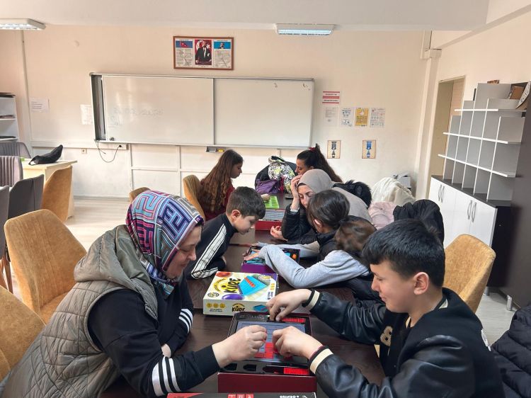 Bandırma Esnaf Sanatkarları Ortaokulu’nda okul kütüphanesi bu kez kitapların yanı sıra zeka oyunlarıyla doldu. Veli ve öğrencilerin birlikte katıldığı etkinlikte zeka oyunları şenliği düzenlendi. Şenlik kapsamında öğrenciler; Abluka oyunu, mangala ve küre oyunu gibi strateji ve dikkat gerektiren oyunlarda hünerlerini sergiledi. Veliler de çocuklarıyla aynı masada yer alarak oyunlara eşlik etti.