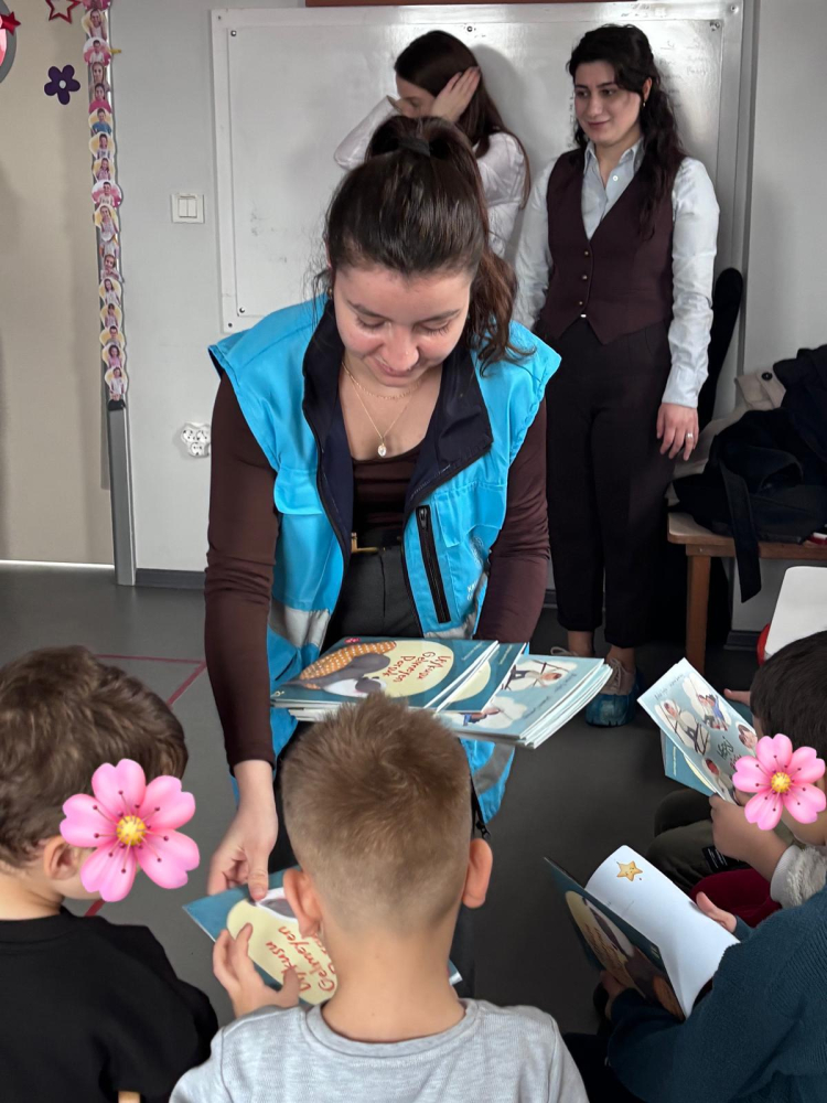 Ayrıca gerçekleştirilen kitap dağıtımıyla çocuklara hediyeler verildi, miniklerin yüzünde tebessüm oluşturuldu.