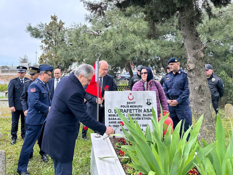 Emniyet teşkilatının 181'inci kuruluş yıl dönümü kapsamında Bandırma Şehitliği ziyaret edildi. Bandırma İlçe Emniyet Müdürlüğü tarafından düzenlenen programa Belediye Başkanı Dursun Mirza, İlçe Jandarma Komutanı Jandarma Binbaşı Onur Durna, İlçe Emniyet Müdürü Mesut Demirdaş, Bandırma 6. Anajet Üssü Garnizon Komutan Vekili Albay Alaaddin Özdemir ve emniyet mensupları katıldı.