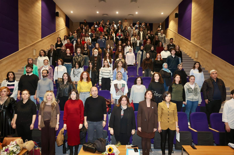 Söyleşinin sonunda, Kadın Aile ve Toplum Hizmetleri Uygulama ve Araştırma Merkezi Müdürü Doç. Dr. Zeynep Aca ile Müdür Yardımcısı Dr. Öğr. Üyesi Gizem Burcu Karaali tarafından Penbe Boztepe’ye çiçek ve teşekkür belgesi takdim edildi.
