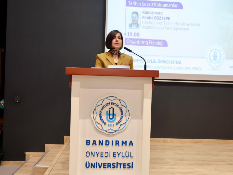 Bandırma Onyedi Eylül Üniversitesi’nde (BANÜ), Dünya Kadın Hakları Günü dolayısıyla “Tarihin Sessiz Kahramanlarına Saygı” başlıklı söyleşi ve oryantiring etkinliği düzenlendi. Kadın Aile ve Toplum Hizmetleri Uygulama ve Araştırma Merkezi ile Sosyal Hizmet Öğrenci Topluluğu tarafından organize edilen program, yoğun katılımla gerçekleştirildi.